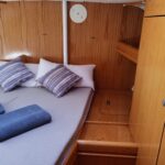 Gran espacio de almacenamiento en el armario delantero, 2 cabezas (WC + ducha), Madera interior de cerezo, Torno de maniobra eléctrico en el techo, Bauprés de aluminio retráctil y desmontable Capota de bañera, Bimini de bañera, Cojines de bañera, Forstay + backstay, Vela mayor de sables completos de regata y otro de recambio pesado – Drizas y rizos devueltos a bañera, Lazy jacks y lazy bag de vela mayor, Génova enrollable, Trinqueta, tangón de spinnaker de aluminio (sistema de almacenamiento en el mástil), Receptor AIS, 3 Frigoríficos 12 V (puerta de apertura superior), Congelador 12 V, Calentador de agua 220 V e intercambiador de calor del motor, Agua caliente y fría a presión, cocina: 2 quemadores cocina + horno de gas butano- 2022, Baterías de servicio – 600 Amp 2022, Controlador de batería, WEBASTO sistema de calefacción, Watermaker 12 V, paneles solares, Balsa salvavidas para 8 pax, Motor fuera de borda – Yamaha 15cv, jarcía labor finales 2022, velas y jarcía antiguas de recambio, Servicios de facturas disponibles. Bomba de Watermaker nueva 2024, bomba achique automática sentina nueva 2024, batería de arranque generador nueva 2024, conexión placas solares nuevas 2024, antifouling 2024