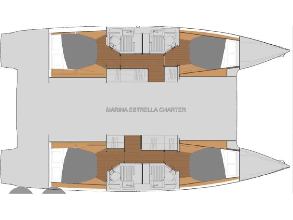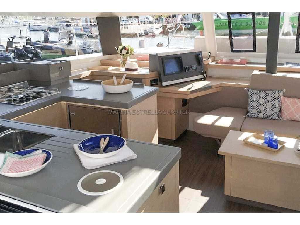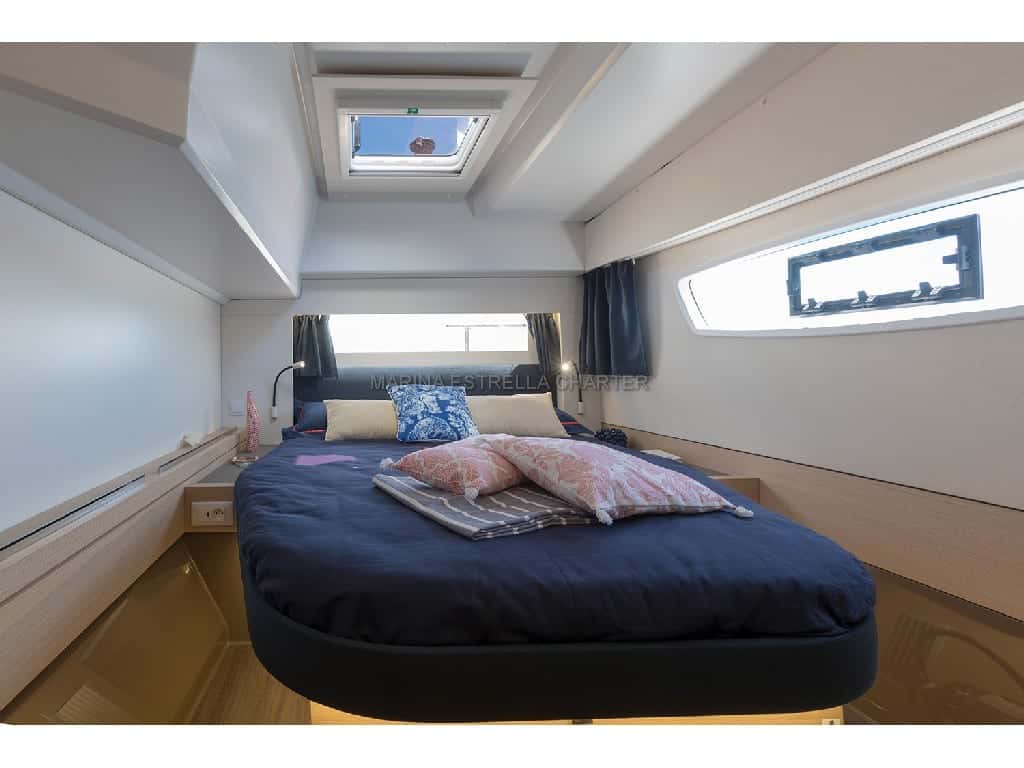 El Astrea 42 es un refugio flotante donde la brisa acaricia y el tiempo se detiene. Sus cuatro cabinas dobles, cada una con baño individual, ofrecen intimidad y confort, mientras que el salón, que se convierte en cama doble, acoge los momentos compartidos y las confidencias al caer la tarde. La capacidad para alojar hasta diez personas durante la noche y once durante el día, siempre con la presencia de un patrón experimentado, permite vivir el mar en compañía, sin renunciar a la calma ni a la seguridad.