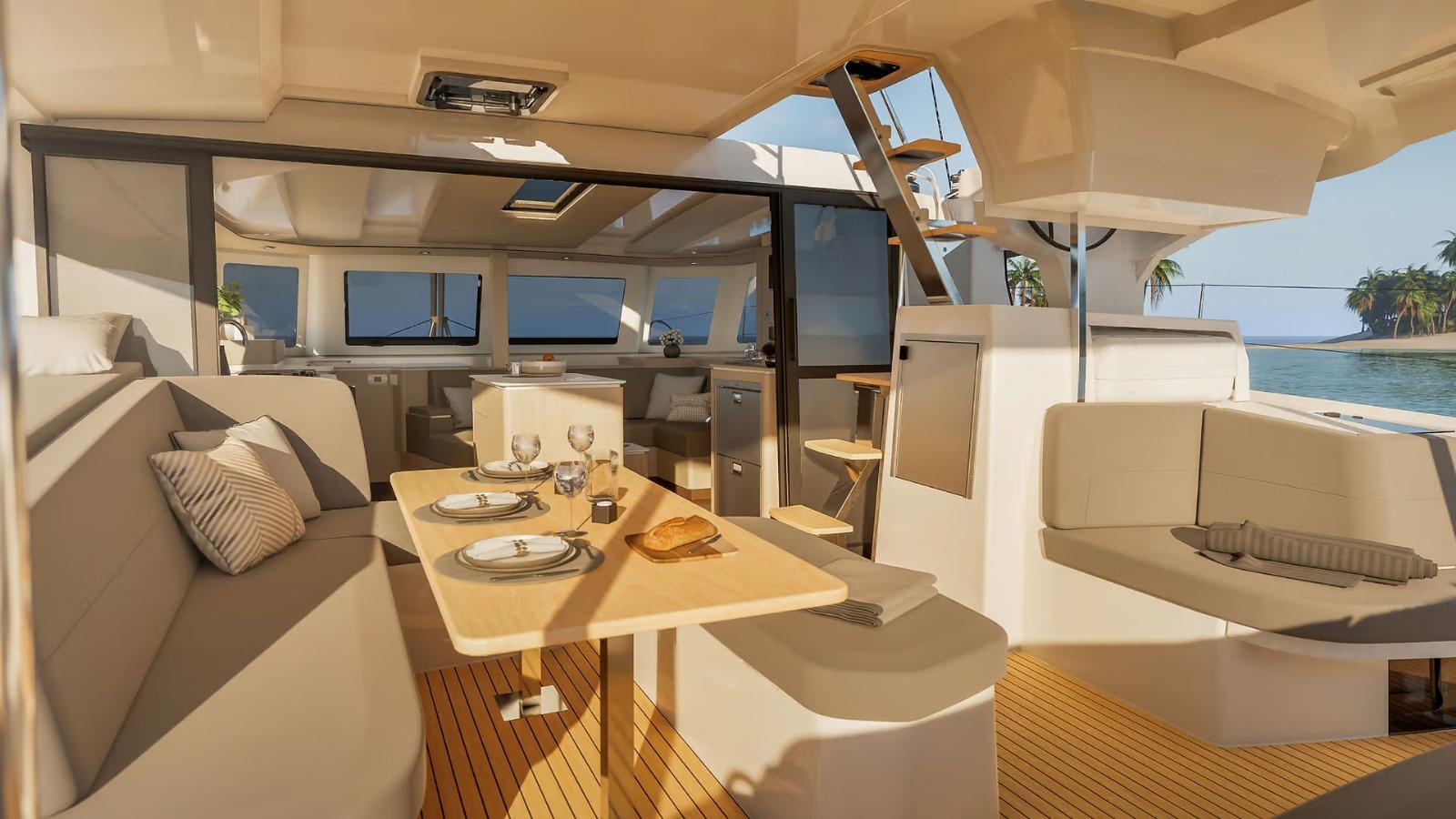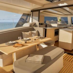 Fountaine Pajot New 41 está diseñado para quienes desean navegar con estilo, disfrutando de comodidad y tecnología avanzada en perfecta armonía con el medio ambiente