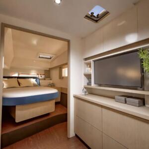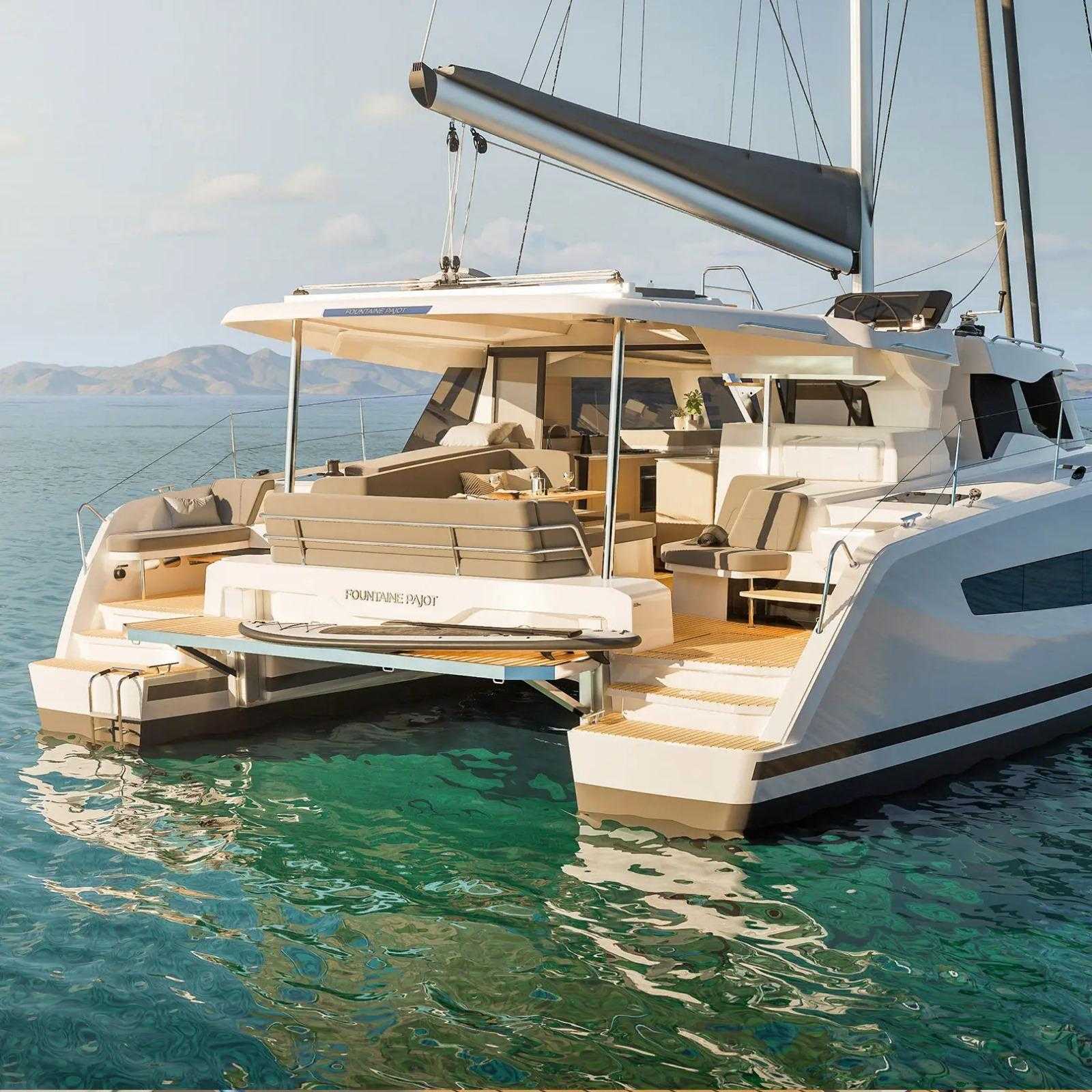 [EN] The Fountaine Pajot New 41 is the perfect catamaran for you if you’re looking for comfort, sophistication, and environmental sustainability. With its innovative design and spacious indoor and outdoor areas, this catamaran is crafted to provide you with a unique sailing experience, whether for coastal getaways or extended adventures. Featuring options like hybrid propulsion and solar panels, it combines exceptional performance with eco-friendly solutions, while its relaxing areas and customizable layout ensure maximum comfort and style.