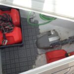 – La embarcación auxiliar va colgada a popa en pescantes.