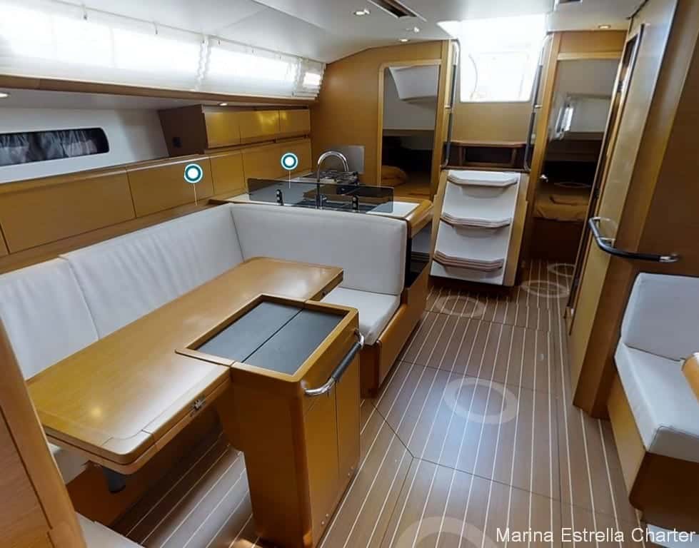 Reformado en 2024 y presentado en un estado impecable, el Sun Odyssey 43.9 conjuga la esencia clásica de Jeanneau con detalles modernos pensados para el confort. Sus tres cabinas dobles, la cabina con literas y el salón convertible ofrecen espacio generoso y acogedor para hasta diez personas, haciendo de cada noche a bordo una experiencia íntima y reparadora. Los dos baños completos garantizan privacidad y comodidad, sea en travesías en familia o escapadas con amigos.
