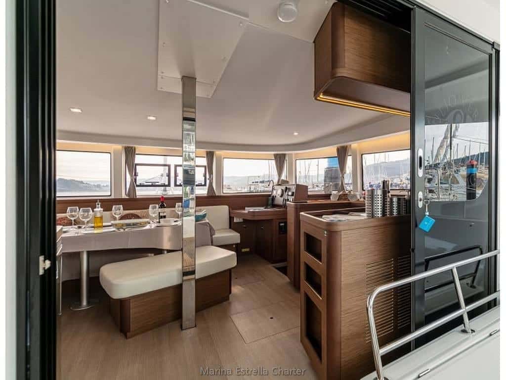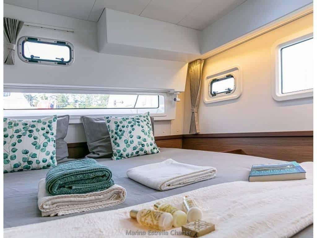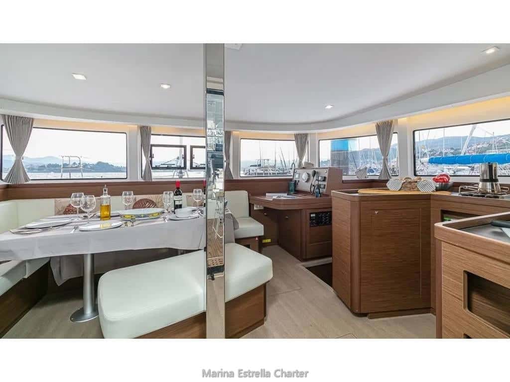 Embarcar en el Lagoon 42 es entregarse a una experiencia de navegación única en el corazón de Galicia. Este multicasco de 12,8 metros de eslora, anclado en Baiona, Pontevedra, invita a surcar las aguas de las Rías Gallegas envuelto en una atmósfera de serenidad y comodidad. Su diseño fluido y elegante, característico de la marca Lagoon, transforma cada travesía en un viaje sensorial donde la luz y el mar se cuelan en cada rincón.