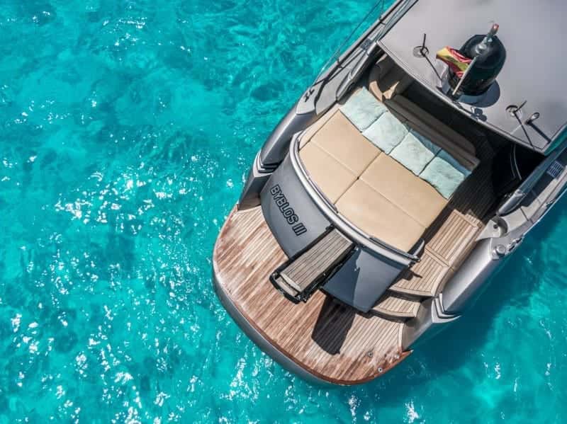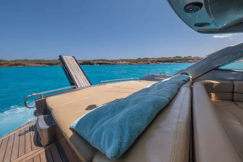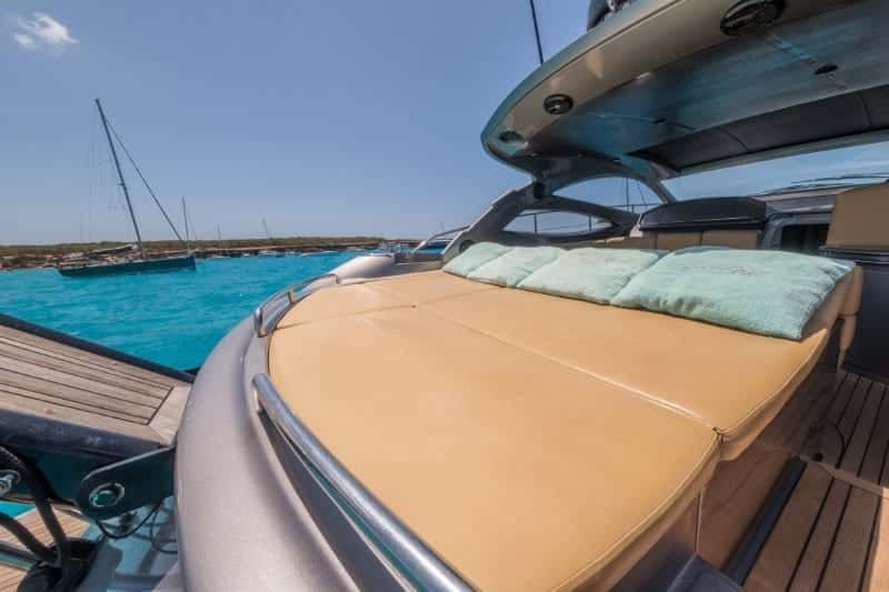 El espacio a bordo seduce desde el primer instante: la cubierta de diseño abierto invita a disfrutar del sol en sus generosas zonas de proa y popa, mientras la cabina con techo retráctil y el bar completamente equipado hacen que cada momento al aire libre se transforme en una celebración de los sentidos. Ya sea entre amigos o en pareja, la atmósfera a bordo está pensada para que hasta 11 personas compartan risas, música y la brisa marina durante el día.