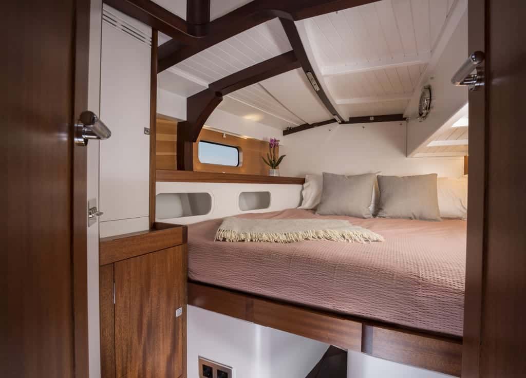 El ANIMA II, construido en 2022, ha sido concebido para aquellos que buscan autenticidad y confort sin concesiones. Sus tres suites, diseñadas para alojar hasta seis huéspedes, ofrecen refugios íntimos en los que el murmullo del agua y la suave luz natural crean una atmósfera serena. La suite principal, con su cama extragrande y baño privado, promete noches de descanso profundo tras días de aventura y contemplación.