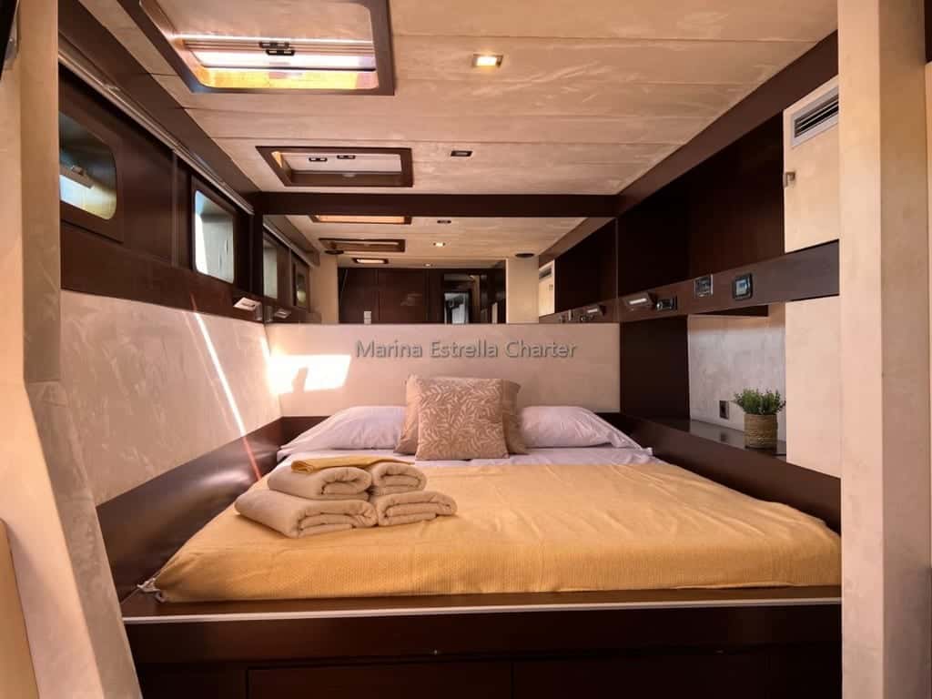 Diseñado para compartir momentos únicos, el Sunreef acoge hasta once personas durante el día y ofrece alojamiento para ocho afortunados viajeros en cuatro cabinas dobles, creando el escenario perfecto para largas jornadas de navegación y noches tranquilas bajo las estrellas. Cada espacio invita al relax y la contemplación, con la amplitud y estabilidad propias de un multicasco que abraza el mar con elegancia y seguridad.