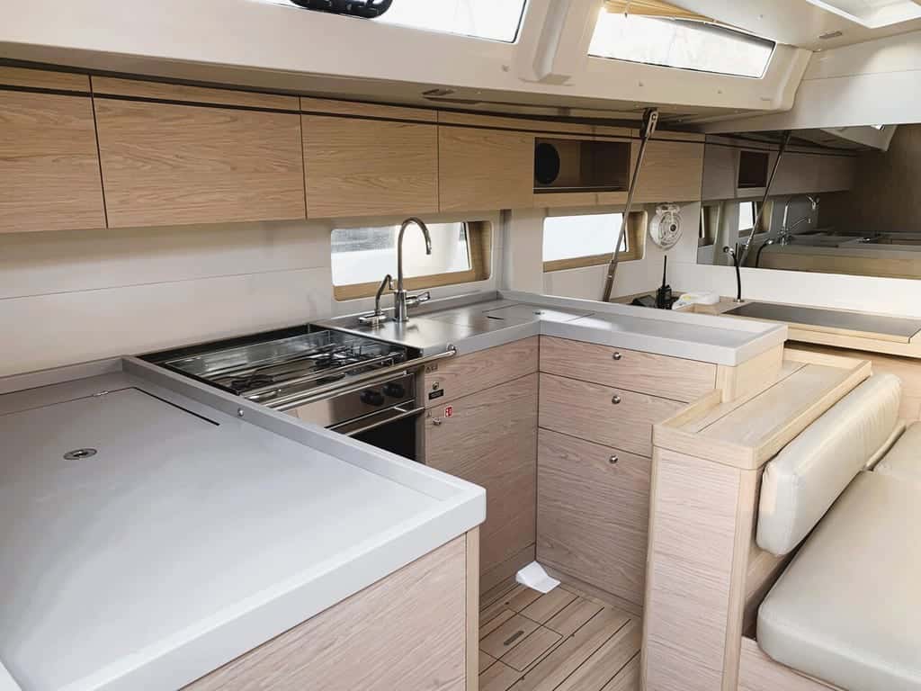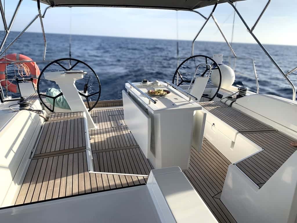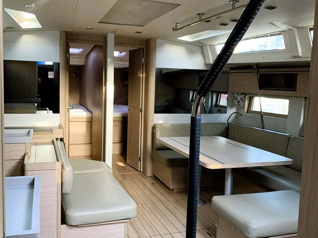A bordo, el Oceanis 51.1 despliega su amplitud y modernidad en cada detalle. Espacioso y acogedor, puede alojar hasta 12 personas tanto de día como de noche, distribuidas en cuatro cabinas dobles, una cabina con literas y un salón convertible, además de una cabina de proa destinada al patrón si lo deseas. Su interior funcional, realzado por el confort del aire acondicionado en puerto y la comodidad de los WC eléctricos, crea un refugio donde relajarse tras un día de navegación.