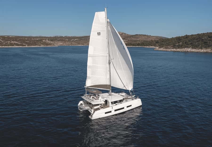 Explorar las aguas de Ibiza a bordo del Dufour 48 es dejarse envolver por la esencia misma del Mediterráneo. Este multicasco, con sus 14,7 metros de eslora y 8 metros de manga, se presenta como un refugio flotante donde el tiempo adquiere un ritmo diferente, guiado por el suave vaivén del mar y el susurro constante de la brisa.