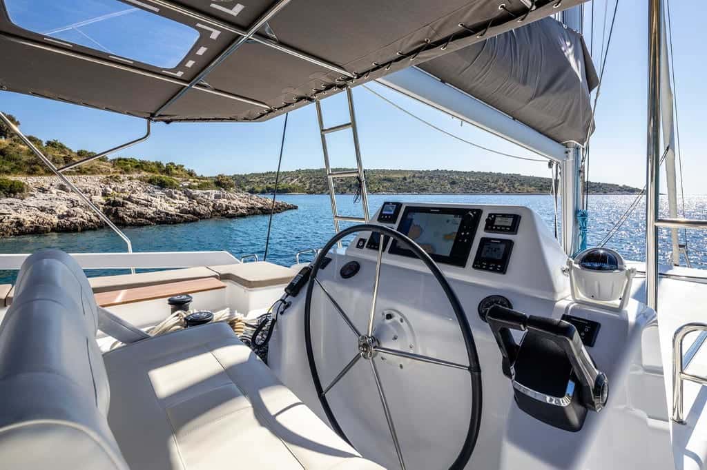 El diseño innovador del Dufour 48 transforma cada rincón en una invitación al disfrute: desde su gran bañera, perfecta para compartir charlas y risas con los tuyos, hasta el flybridge tipo lounge, concebido como una segunda bañera en altura, con asientos, mesa y solárium para saborear el horizonte sin prisas. Las cubiertas espaciosas y seguras permiten moverse con libertad, mientras que las zonas de solárium en la proa son el escenario ideal para dejarse acariciar por el sol y contemplar la inmensidad azul.