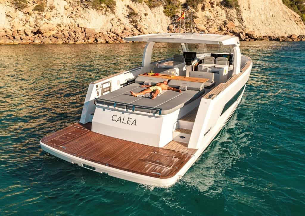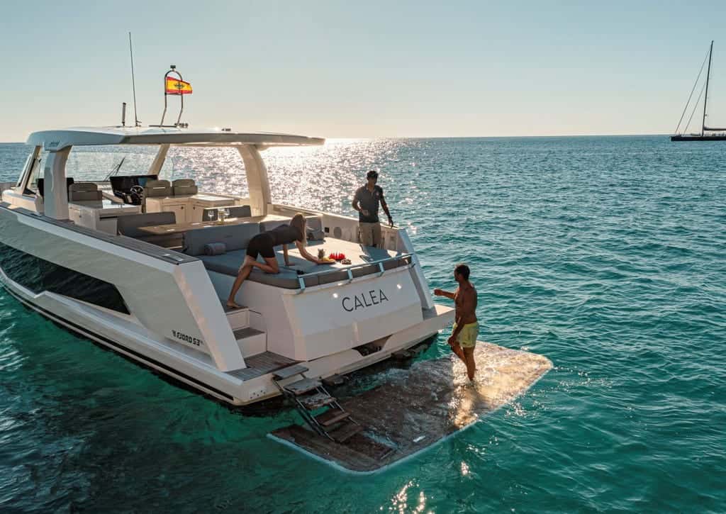 En el corazón de Ibiza, donde el azul del Mediterráneo invita a la aventura, el Fjord 53 XL despliega su elegancia en cada línea. Este open yacht de 16,7 metros de eslora, con su diseño innovador y minimalista, redefine el placer de navegar. A bordo, la amplitud se siente en cada rincón: desde los generosos soláriums en proa y popa, donde el sol acaricia la piel y el mar se convierte en el mejor de los escenarios, hasta la plataforma hidráulica que invita a zambullirse y dejarse abrazar por las aguas de Baleares.