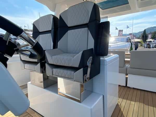 En cubierta, la teca bajo los pies y el bimini rígido ofrecen el equilibrio perfecto entre confort y sofisticación, mientras el aire acondicionado asegura una atmósfera agradable en cualquier momento del día. La plataforma de baño hidráulica invita a sumergirse en aguas cristalinas, y el equipo de sonido con Bluetooth acompaña cada instante con la banda sonora perfecta para el viaje. La consola de navegación, moderna y completa, brinda confianza y facilidad para explorar la costa mallorquina a tu propio ritmo.