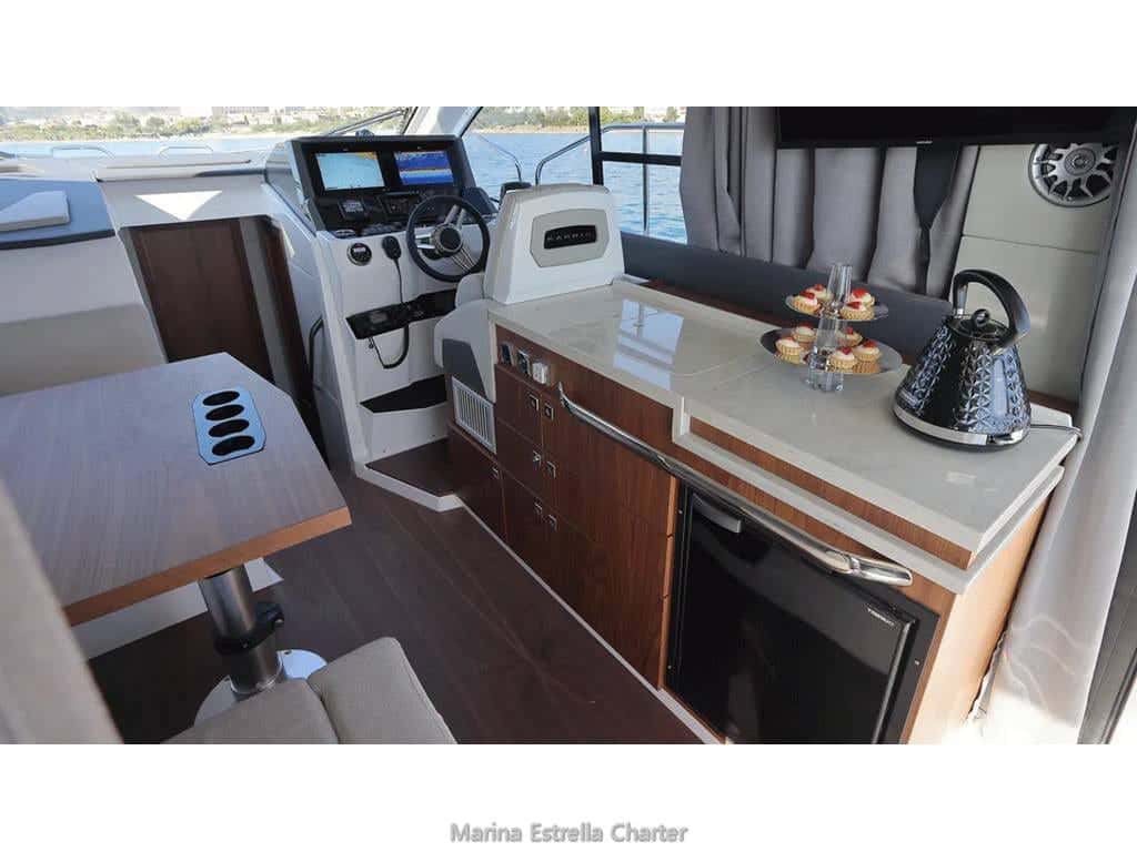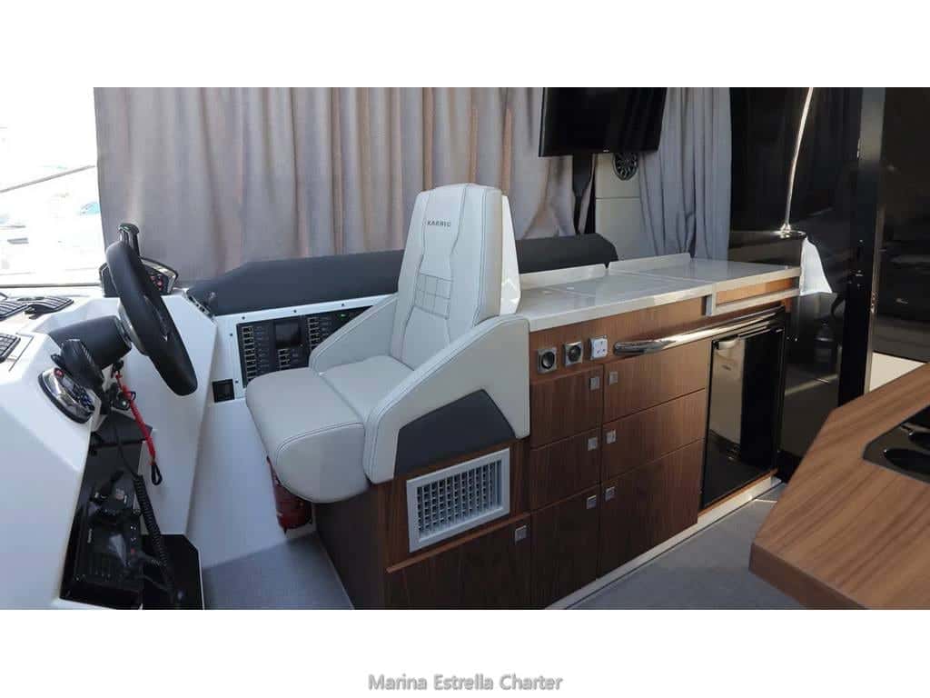 Diseñado para quienes buscan una experiencia sin intermediarios, el Karnic S37X se alquila sin patrón, permitiendo a los navegantes ser los propios dueños de su travesía. Hasta diez personas pueden compartir la emoción del día, disfrutando del solarium a proa, el suave vaivén bajo la mesa de la bañera, o el salón integrado, donde el sofá y la barbacoa se convierten en escenario de largas sobremesas al aire libre. Cuando cae la noche, seis afortunados encuentran refugio en tres cabinas con cama doble, envueltos en el silencio del mar y la comodidad de un baño completo con inodoro eléctrico.