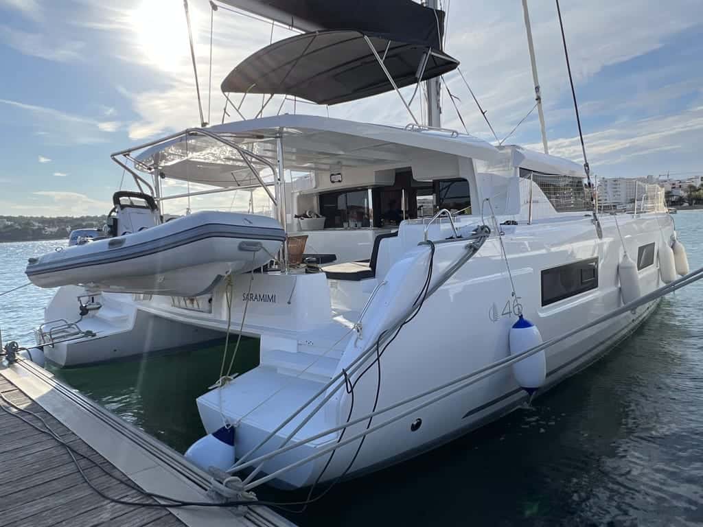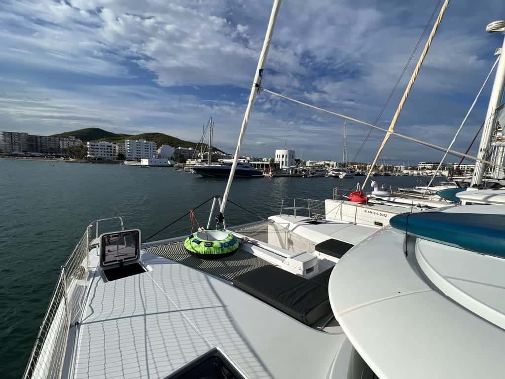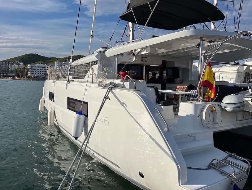 En el corazón de las Baleares, el Lagoon 46 despliega su elegancia y carácter en las aguas de Sant Antoni de Portmany. Este catamarán de 13,99 metros de eslora y 8 metros de manga es mucho más que un barco: es una invitación a dejarse llevar por el ritmo sereno del Mediterráneo, rodeado de luz, espacio y la brisa marina que todo lo transforma.