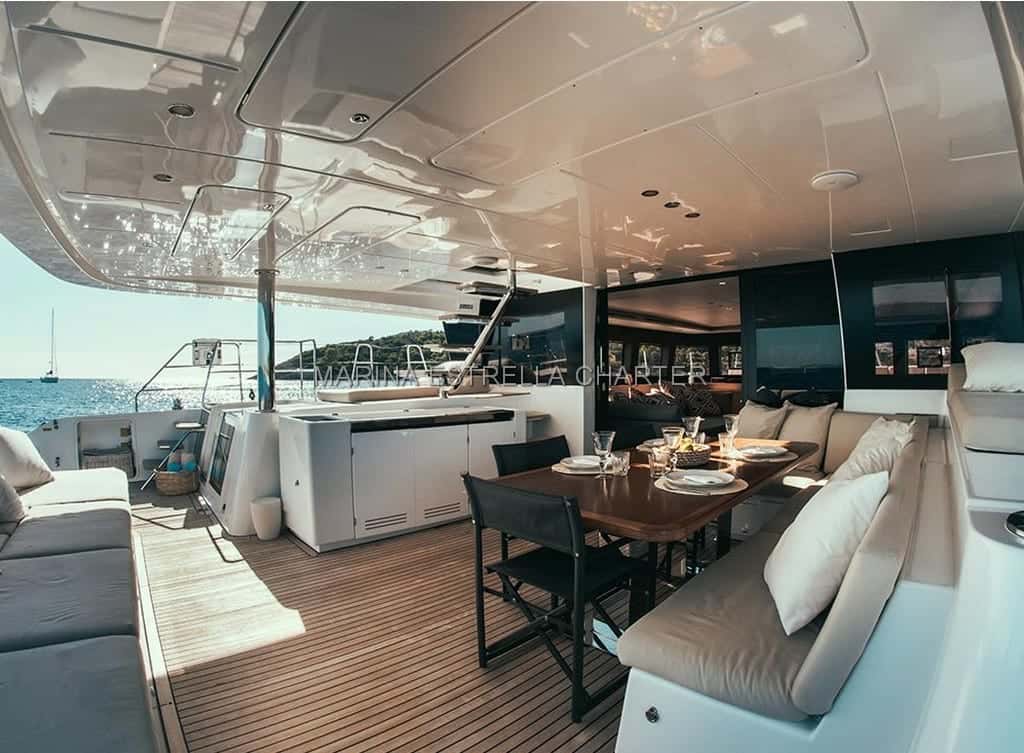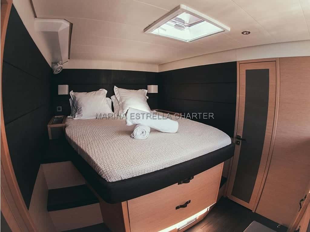 El Lagoon 620, botado en 2017, se encuentra amarrado en Sant Antoni de Portmany, uno de los rincones más vibrantes de las Baleares. Pensado para compartir momentos inolvidables, su interior acoge tres cabinas dobles y un camarote con literas, permitiendo el descanso de hasta ocho personas durante la noche. El ambiente a bordo está impregnado de calma y bienestar, con cada detalle dispuesto para que la experiencia sea tan plácida como el vaivén del mar.