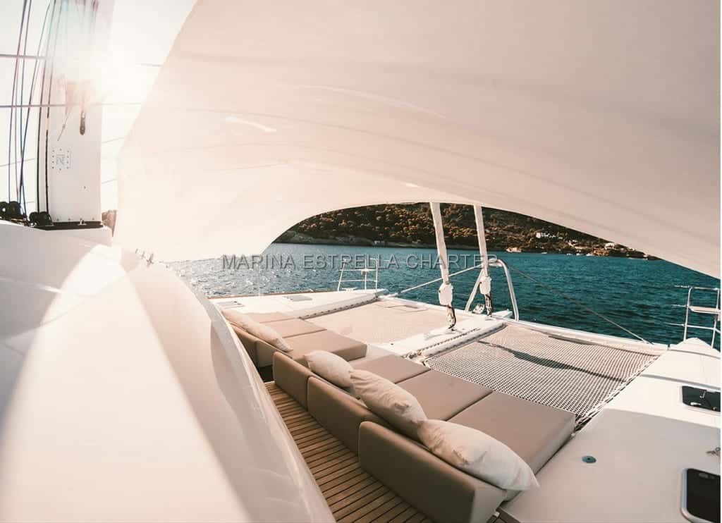 Surcar las aguas de Ibiza a bordo del Lagoon 620 es una invitación a descubrir el Mediterráneo desde una perspectiva privilegiada. Este multicasco de 18,9 metros de eslora, con sus generosos 10 metros de manga, despliega espacios que invitan al relax y la contemplación, mientras la brisa marina acaricia la piel y el horizonte se extiende infinito desde la cubierta.