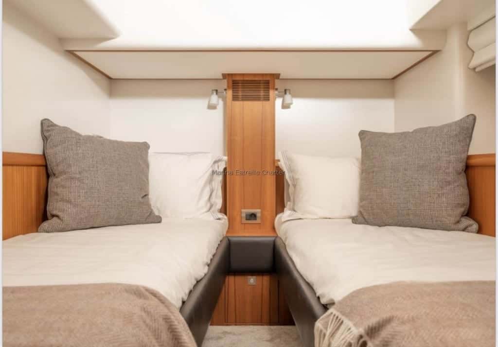 Navegar a bordo del Mulder Favorite 1500 es sumergirse en el encanto atemporal de una embarcación con alma propia. Su silueta vintage y su estética retro capturan todas las miradas en el puerto de Cala d'Or, donde el Mediterráneo despliega su azul inconfundible y la luz de Baleares acaricia cada detalle de su diseño. Con una eslora de 15,6 metros, este barco a motor invita a disfrutar del mar desde una perspectiva elegante y serena.