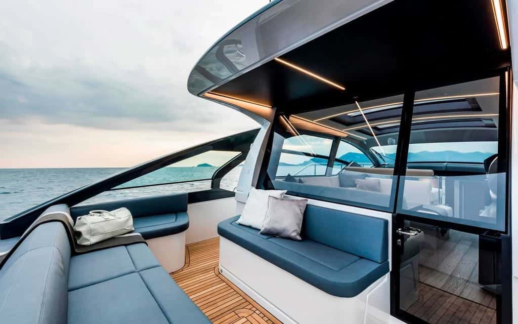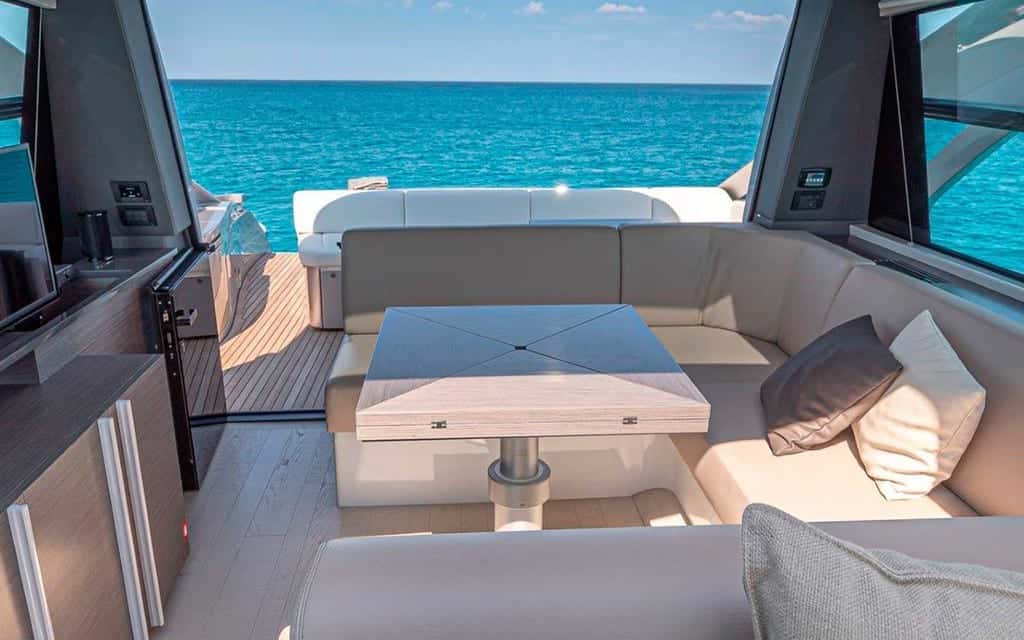 El diseño del Pershing 5X está pensado para disfrutar cada momento: la cubierta ofrece generosos espacios para compartir, ya sea bajo la sombra en el área de asientos o extendido al sol, con la tranquilidad de saber que todo está dispuesto para el máximo confort. La tripulación, siempre atenta, permite entregarse plenamente al placer de navegar sin preocupaciones, transformando cada instante a bordo en una experiencia memorable.