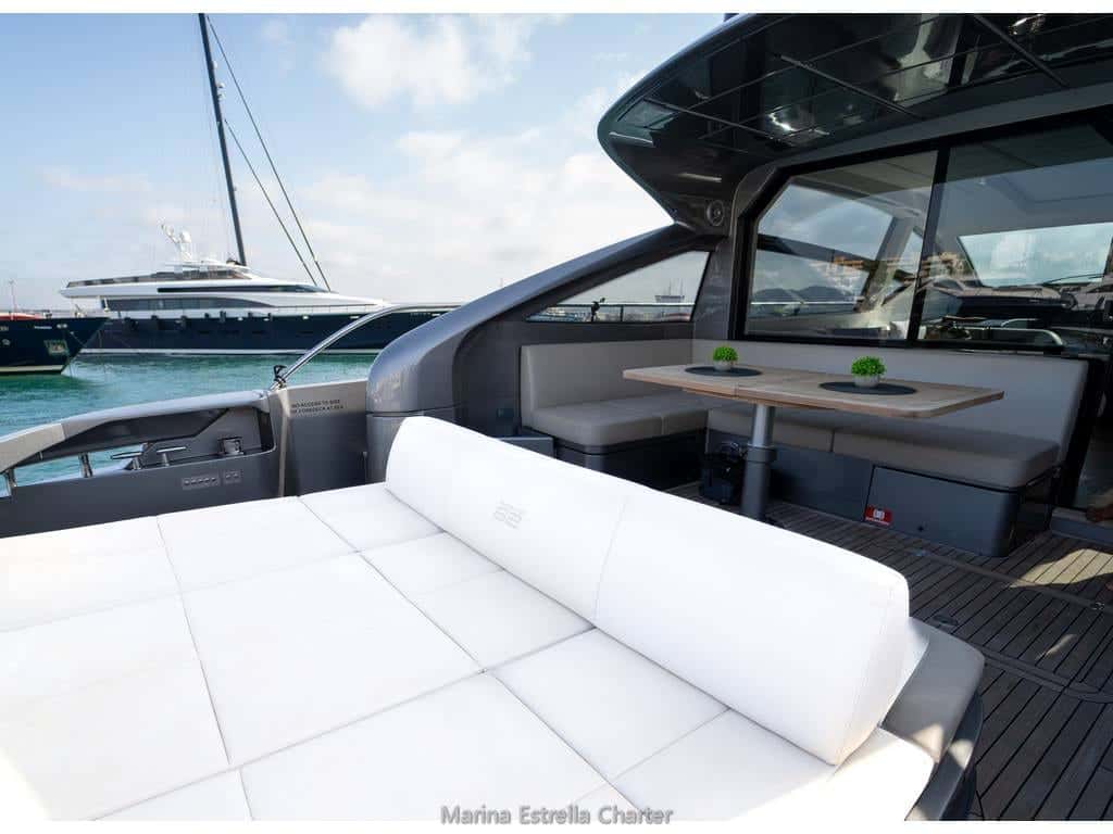 Diseñado para quienes buscan vivir el mar sin renunciar al confort, este yate de 2018 acoge hasta doce personas durante el día, ofreciendo espacios generosos y detalles pensados para el disfrute. Dos solariums —uno a proa y otro a popa— invitan a entregarse al sol o a la brisa, mientras la plataforma de baño de teca se convierte en el mejor trampolín hacia las aguas turquesas. El salón interior, amplio y luminoso, ofrece vistas abiertas que prolongan la sensación de libertad.