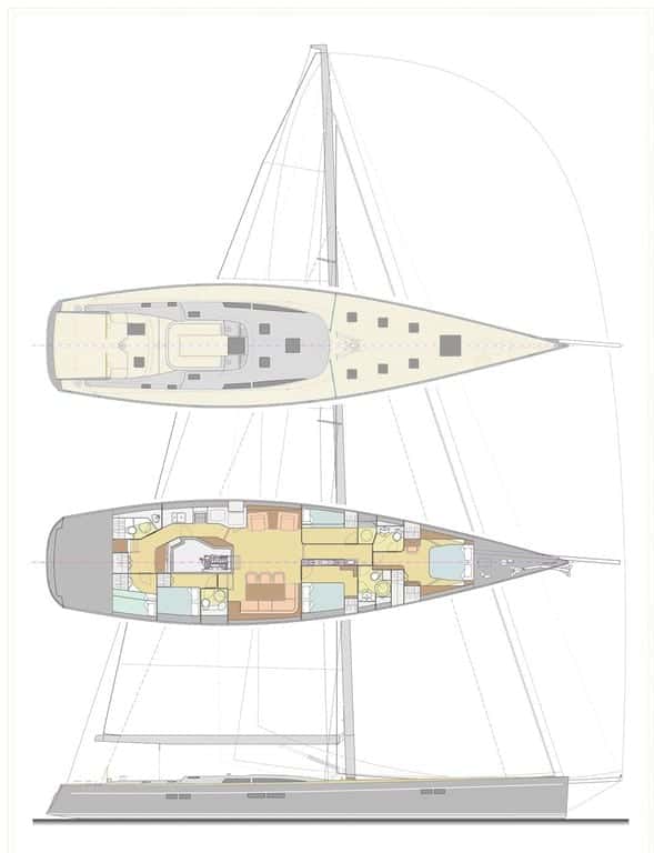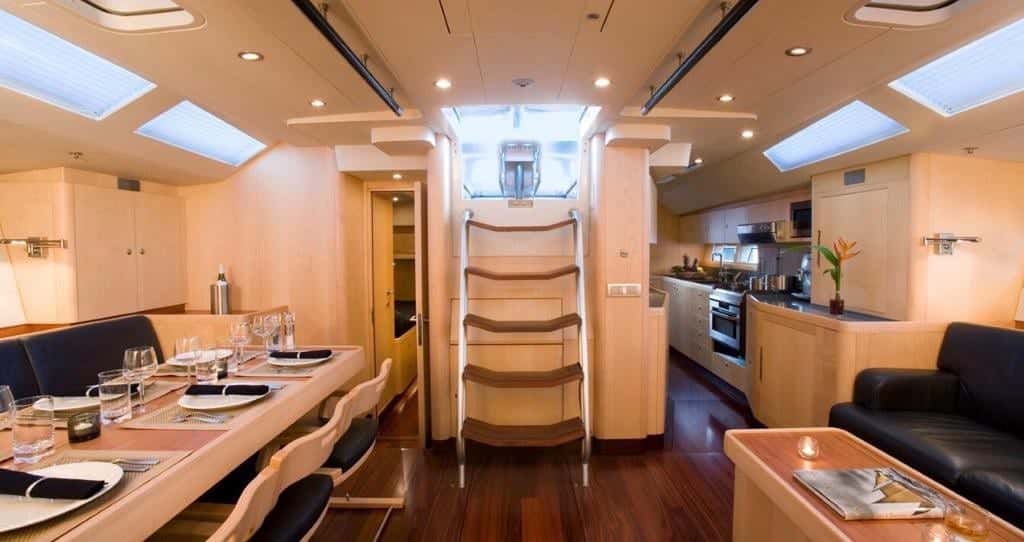 Desde el momento en que se pisa cubierta, el Swan 78 transmite la sensación de estar en casa, rodeado de confort y exclusividad. Su amplitud —con una manga de 5.7 metros— invita a compartir la calma del mar en buena compañía, mientras la tripulación se encarga de cada detalle para que la estancia a bordo sea perfecta. Cada espacio está pensado para que hasta ocho invitados vivan la magia de las noches fondeados bajo las estrellas, mecidos suavemente por el rumor del agua.