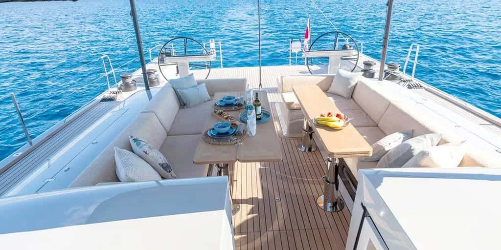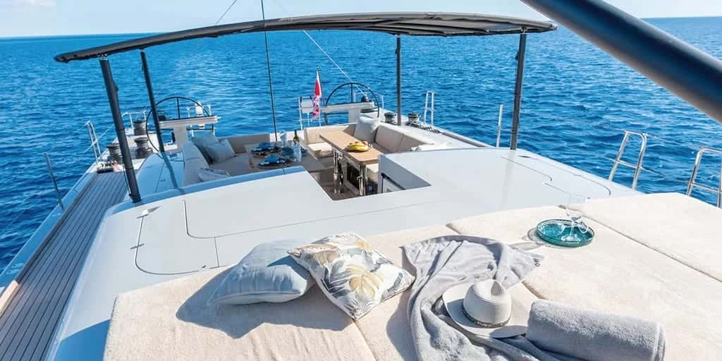 El Y7 acoge hasta seis huéspedes en tres cabinas cuidadosamente diseñadas: una principal con cama king-size y dos dobles con camas twin, una de las cuales puede transformarse en cama doble, adaptándose a las preferencias de cada grupo. Los espacios interiores, amplios y luminosos, invitan a dejarse llevar por el vaivén del mar y a disfrutar de momentos de calma tras una jornada de navegación frente a las costas de Baleares, Córcega o Cerdeña.