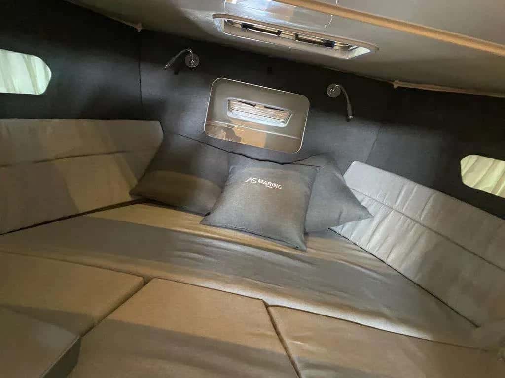 El AS Marine 26GL es un refugio flotante donde cada rincón invita a la desconexión. Sus amplios soláriums en proa y popa son perfectos para dejarse acariciar por el sol entre cala y cala, mientras el toldo extensible doble brinda sombra en la zona de popa cuando el calor aprieta. En el interior, la cabina sorprende por su amplitud y comodidad, e incluye un WC independiente, pensado para prolongar la sensación de libertad durante toda la jornada.