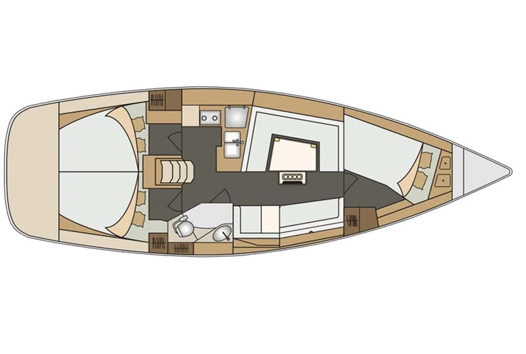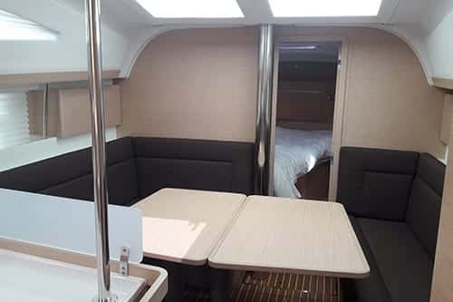 El diseño del Elan Impression 40, moderno y equilibrado, se traduce en espacios amplios y luminosos, tanto en la cubierta como en el interior. Tres cabinas dobles y un salón convertible ofrecen un refugio cómodo para hasta ocho personas durante la noche, y hasta nueve en travesías diurnas. Cada jornada a bordo se convierte en una experiencia compartida, donde el tiempo parece detenerse entre fondeos tranquilos, playas escondidas y el bullicio marinero de las rías.