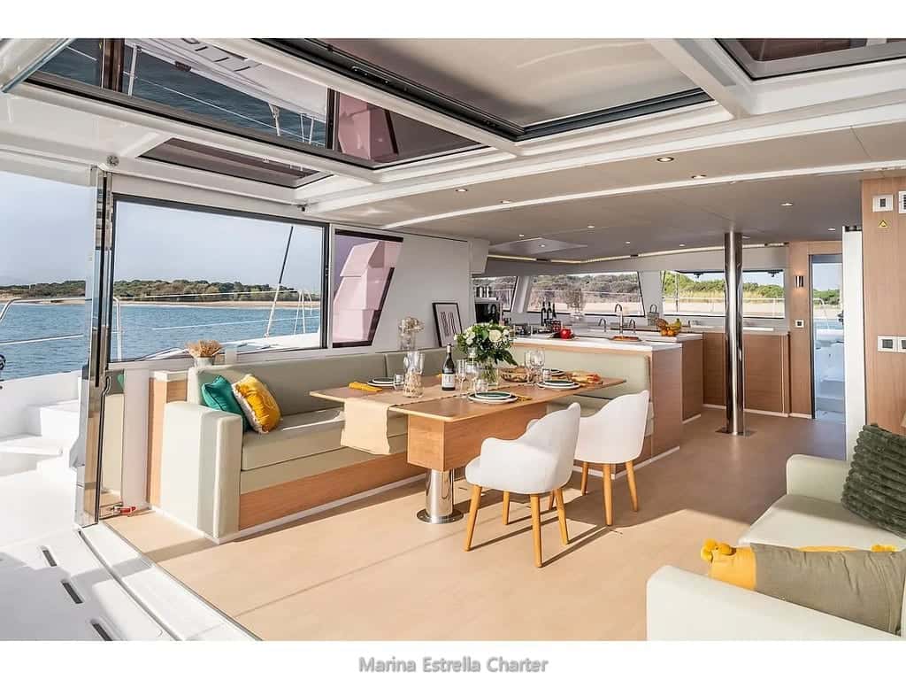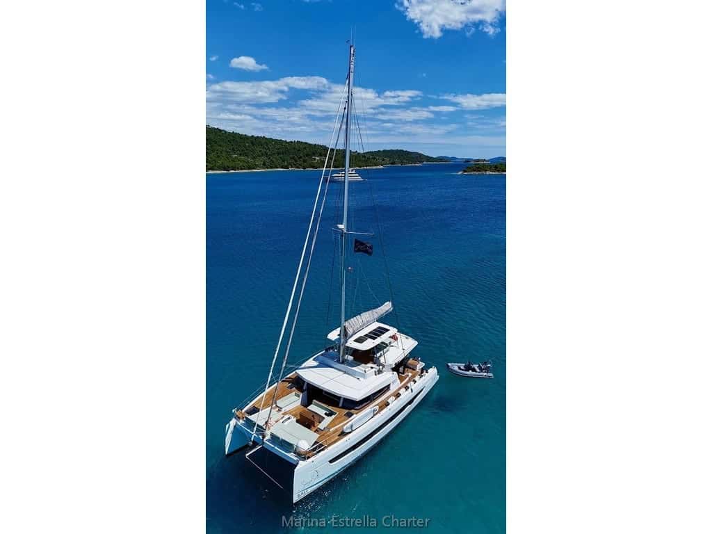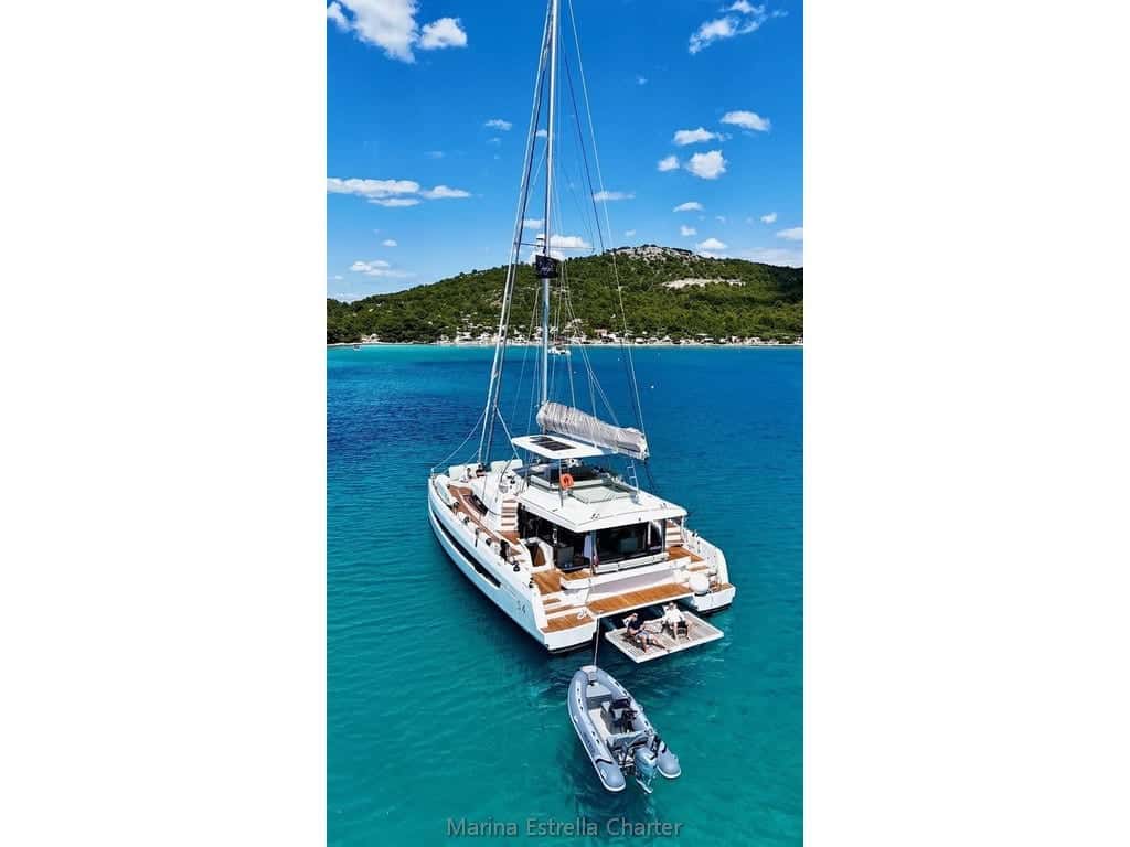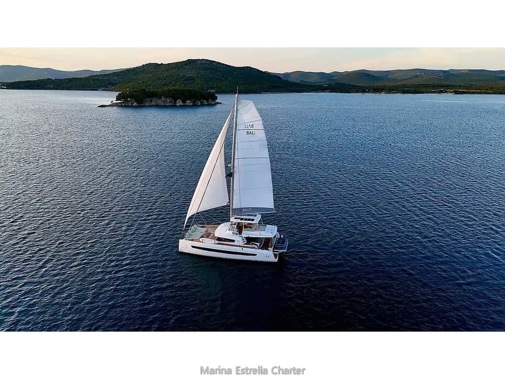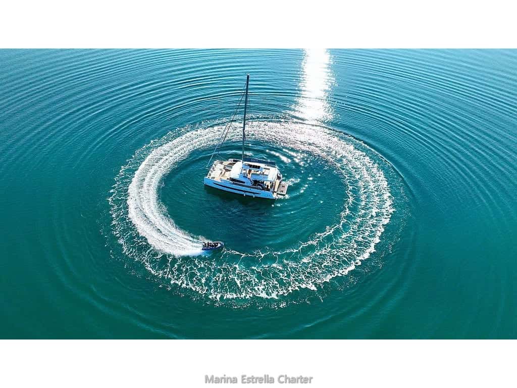 Stellen Sie sich vor, an Bord des Bali 5.4 zu sein, und lassen Sie sich vom Vergnügen des Segelns in einem der großzügigsten und modernsten Multihulls seiner Kategorie mit einer Länge von 16,8 Metern und fast 9 Metern Breite mitreißen. Dieser Katamaran der Marke Bali lädt dazu ein, Ibiza und die Balearen mit einem Gefühl von Weite und Freiheit zu entdecken, das schwer zu übertreffen ist. Natürliches Licht durchflutet alles, dank großer Fenster und offener Räume, die das Innere mit der Brise des Mittelmeers verbinden und es ermöglichen, dass jeder Moment an Bord in Harmonie mit dem Meer erlebt wird.
