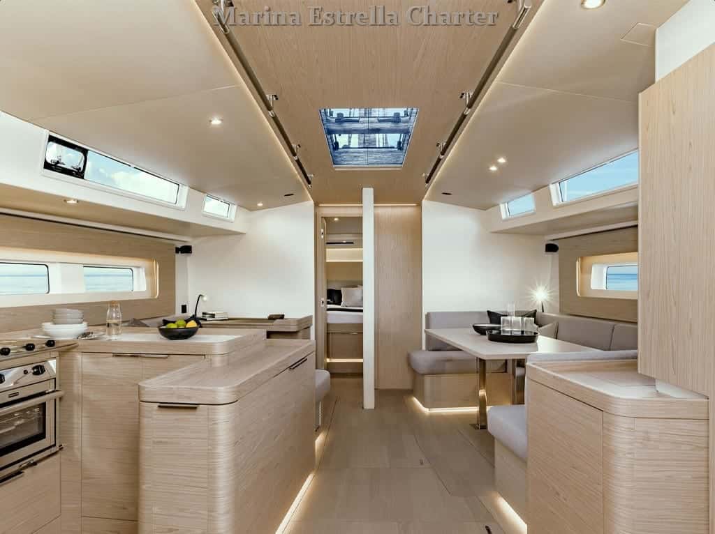 Die Oceanis 54 bietet Platz für bis zu zwölf Personen tagsüber und hüllt sie in eine Atmosphäre von Weite und Komfort. Ihr Innenraum beherbergt drei Doppelkabinen, zwei Badezimmer und eine zusätzliche Kabine für den Skipper im Bug; außerdem ermöglichen zwei zusätzliche Plätze im Salon, dass die Nacht für sieben Glückliche verlängert wird. Alles ist darauf ausgelegt, das Meer in vollen Zügen zu genießen, vom großzügigen Sonnendeck im Bug bis zum umwandelbaren Cockpittisch, wo die Zeit zwischen Gesprächen und der salzigen Brise stillzustehen scheint.