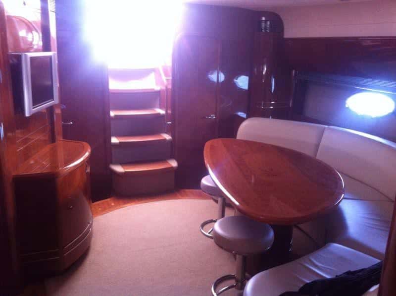 Ihr Innenraumdesign mit drei Kabinen und einem geräumigen Salon bietet einen Rückzugsort voller Weite und Komfort, ideal, um die Reise mit den Menschen zu teilen, die dir am meisten am Herzen liegen. Auf dem Deck wird das Sonnendeck am Heck mit drei großen Liegen zur perfekten Kulisse, um sich der Sonne, dem sanften Schaukeln des Meeres und der Ruhe der menorquinischen Buchten hinzugeben, wo die Zeit stillzustehen scheint.