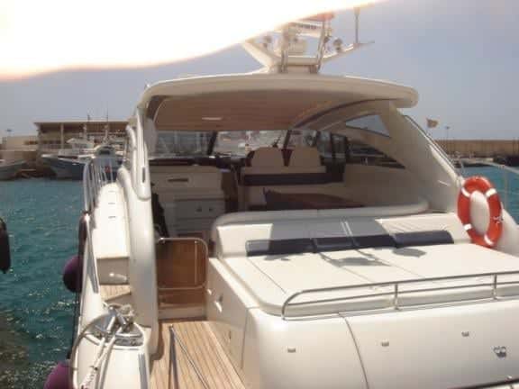Lass dich vom Blau Menorcas an Bord der Princess V58 umhüllen, einem 17,67 Meter langen Motorboot, das das Vergnügen, durch die Balearen zu segeln, neu definiert. Vom Hafen von Mahón aus lädt dieses Meisterwerk britischer Ingenieurskunst dazu ein, die Insel aus einer privilegierten Perspektive zu entdecken, wo jede Ecke für das Genießen der Sinne gedacht ist.