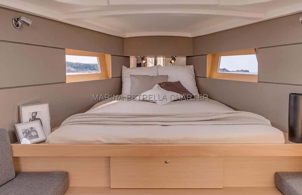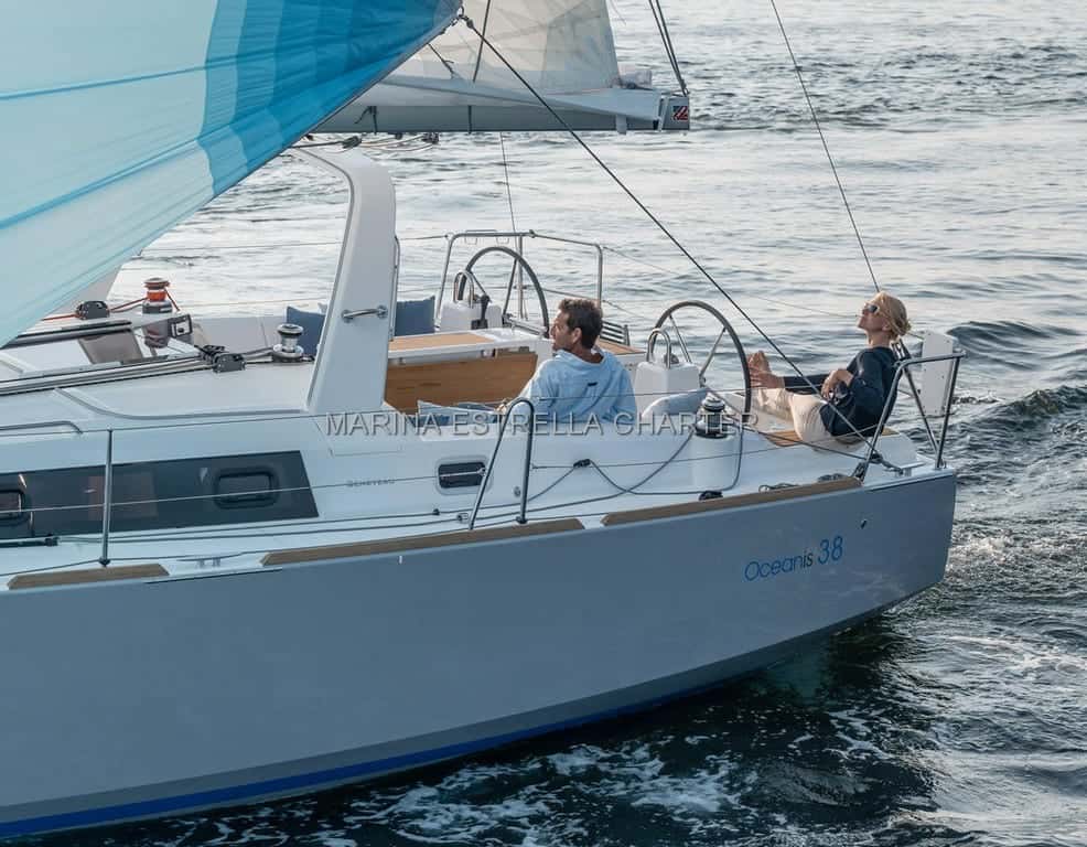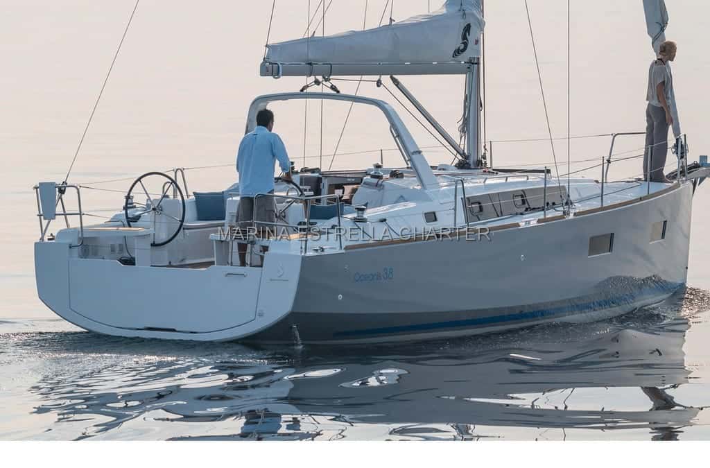 Designed for experienced sailors, the Oceanis 38.1 invites you to take the helm and let the wind guide you. With no skipper on board, the feeling of autonomy multiplies, allowing you to decide every course, every cove, every pause under the sun. With three double cabins, a bathroom, and a convertible lounge, this sailboat accommodates up to eight people, enveloping them in a bright and welcoming atmosphere, where life on board flows naturally, whether on short getaways or extended voyages.
