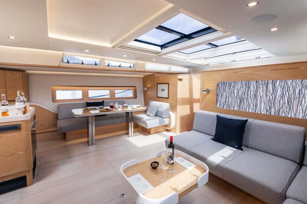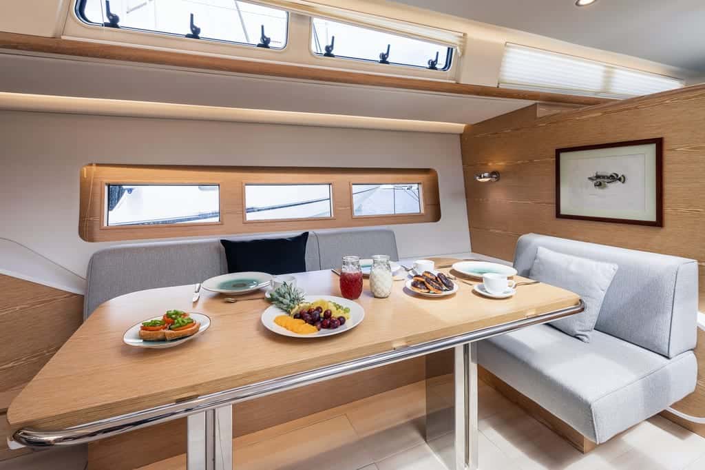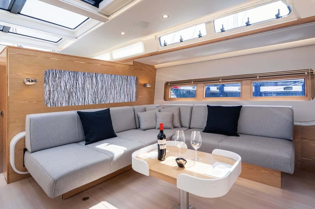 On board, space becomes a shared privilege. Up to ten people can indulge in the experience of sailing together, with the confidence of personalized service provided by a captain and an assistant. During the night, the Hanse 675 embraces the rest of six guests in its three cabins, each with its own bathroom, and offers a lounge equipped with TV/DVD and air conditioning for moments of pause and conversation.