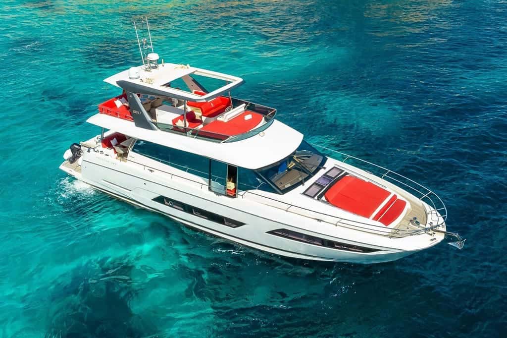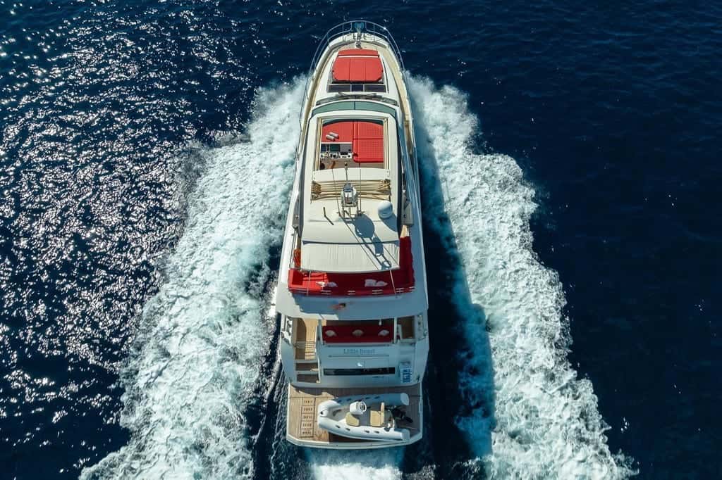 There are boats that become a passport to another rhythm, another horizon, another way of feeling the sea. The Prestige 680 “LITTLE BEAST” is one of them. With its 21.46 meters in length and lines that combine elegance and power, it invites you to leave behind the hustle and bustle of the mainland and immerse yourself in the deep blue of the Balearic Islands. Moored in the port of Palma, it patiently awaits those seeking a journey where every moment on board becomes an unforgettable memory.