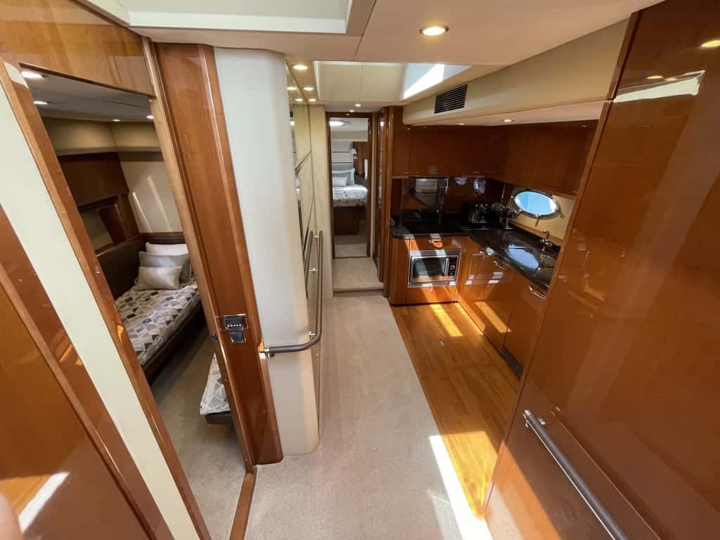 Imagine sailing with up to ten people during the day, surrounded by the Mediterranean breeze and the endless horizon. Every corner of this Princess has been designed to invite relaxation, allowing time to dissolve among conversations, laughter, and the gentle sway of the waves. If you decide to extend the adventure, the generous overnight capacity of six people will let you enjoy peaceful nights cradled by the sea.