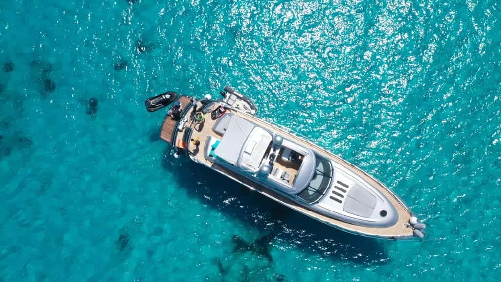 Sailing the waters of Menorca aboard the Princess V65 is to embark on an experience where time seems to stand still. At 21.3 meters in length, this motor yacht, anchored in Mahón, invites you to discover the Mediterranean from an intimate and sophisticated perspective, where every corner of the boat reflects the balance between elegance and comfort.