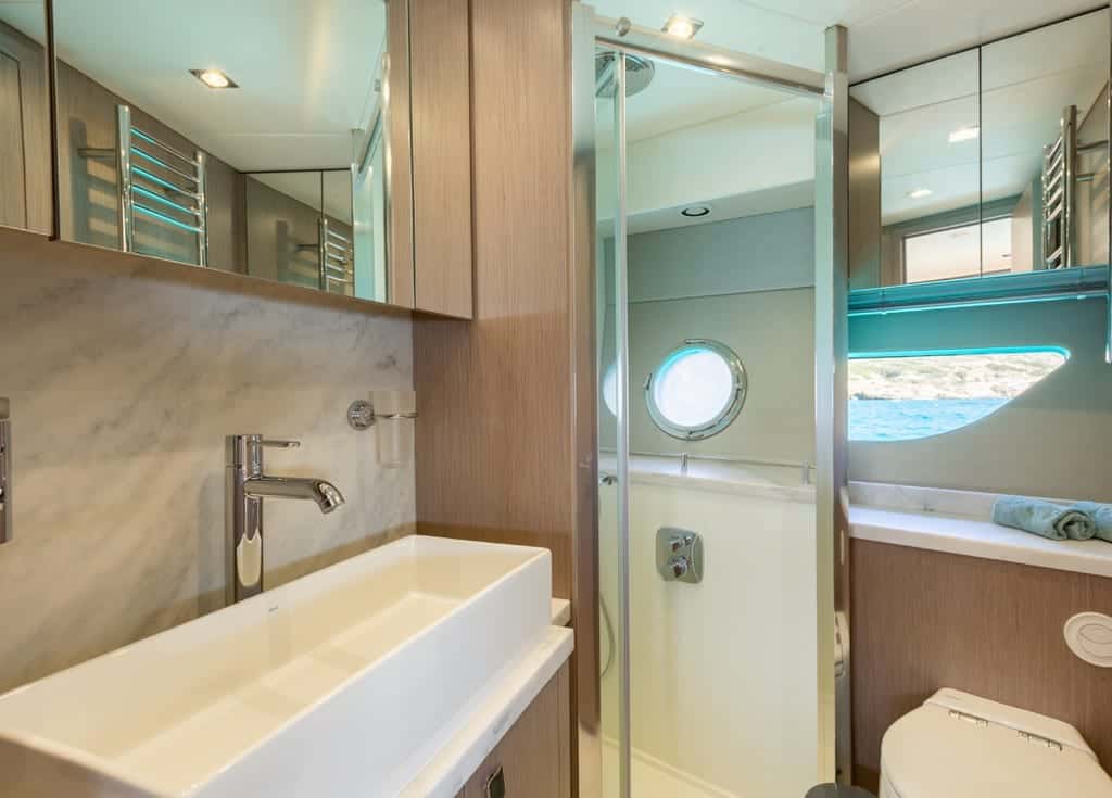 Aboard, the experience transforms into pure delight: the outdoor spaces of BOEFJE II are designed to savor the breeze, relax under the sun, and share unforgettable moments with your companions. The sunbathing area at the stern, the teak deck, and the hydraulic platform blend seamlessly with the surroundings, while the electric roof and Bluetooth sound system accompany every moment, creating the perfect atmosphere for relaxation and enjoyment.