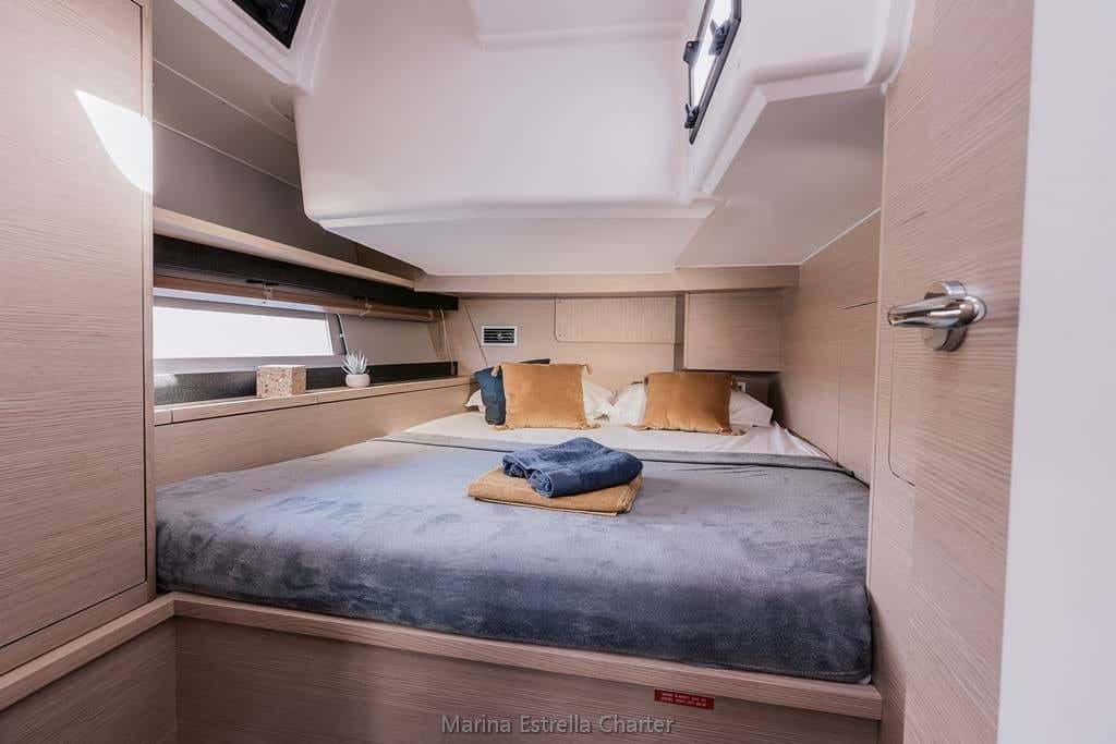 Le Dufour 470 dans sa version armateur offre un espace pensé pour ceux qui apprécient le confort sans renoncer au plaisir de l'aventure. La cabine principale à l'avant, lumineuse et généreuse, est un refuge privé où le murmure de l'eau accompagne les rêves. Deux cabines doubles à l'arrière et une cabine avec lits superposés ajoutent une capacité pour jusqu'à dix personnes, faisant de ce voilier l'option idéale pour les familles ou les groupes d'amis qui souhaitent partager des moments inoubliables, tant pendant la journée que sous le manteau étoilé de la nuit.