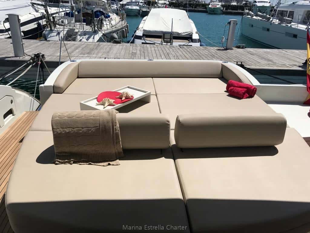 L'esperienza sull'Azimut 68 S è pensata per coloro che cercano un equilibrio perfetto tra sofisticazione e piacere. Durante il giorno, fino a dieci ospiti possono condividere il piacere di navigare in compagnia, godendo del sole nell'ampio solarium di prua o della brezza marina a poppa, dove una seconda zona di solarium e la piattaforma da bagno invitano a rinfrescarsi. Al calar della sera, il barbecue e il tavolo da pranzo all'ombra diventano lo scenario ideale per lunghe conversazioni e risate condivise, con la Costa Blanca come sfondo.