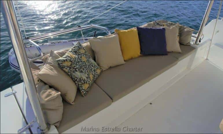 Il Bali 4.5 è stato concepito per chi desidera vivere il mare con intensità, senza rinunciare al comfort. Quattro cabine doppie e due singole, insieme a quattro bagni, permettono di condividere la traversata con amici o familiari —fino a 12 persone— in assoluta comodità, sia di giorno che di notte. Ogni angolo è pensato per il relax: dal flybridge panoramico, ideale per farsi accarezzare dalla brezza, fino alla prua con divani e solarium, dove il tempo sembra fermarsi sotto il cielo balearico.